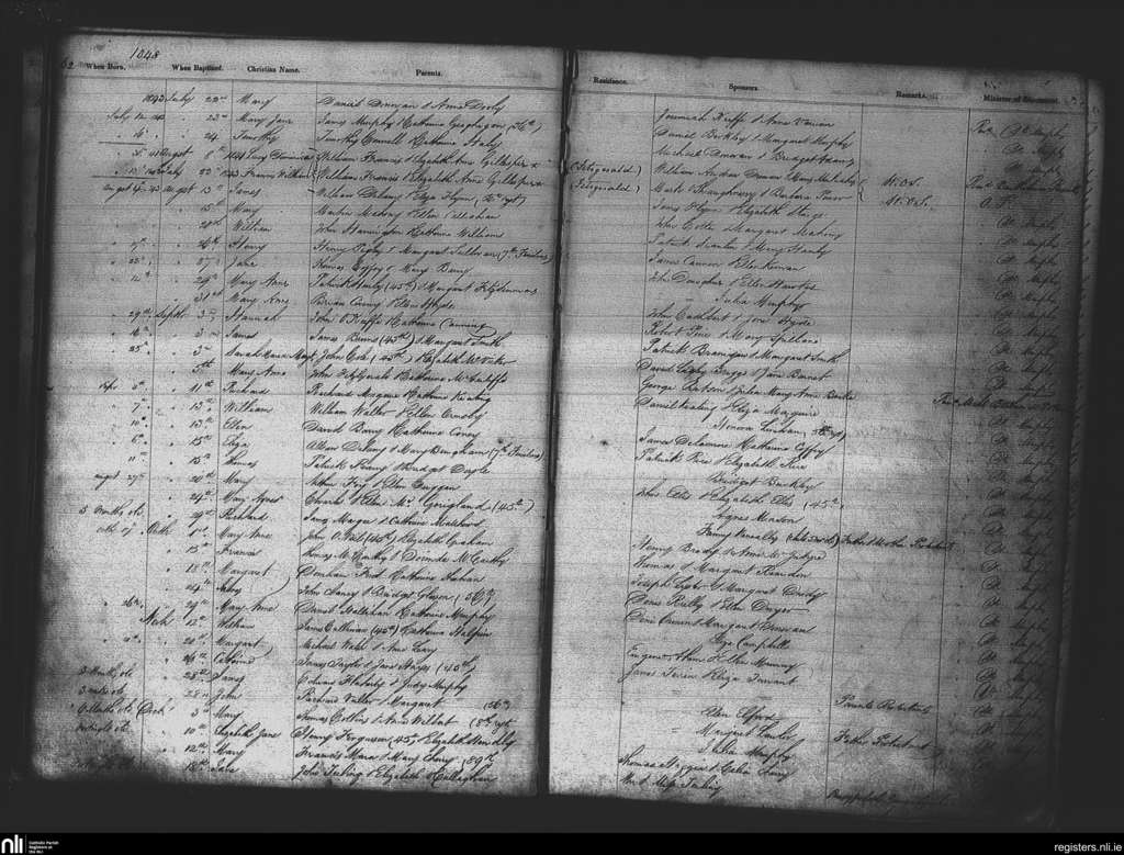 St. Patrick's, Cork city; County of Cork; Diocese of Cork and Ross. Baptisms, July 1843 to Dec. 1843