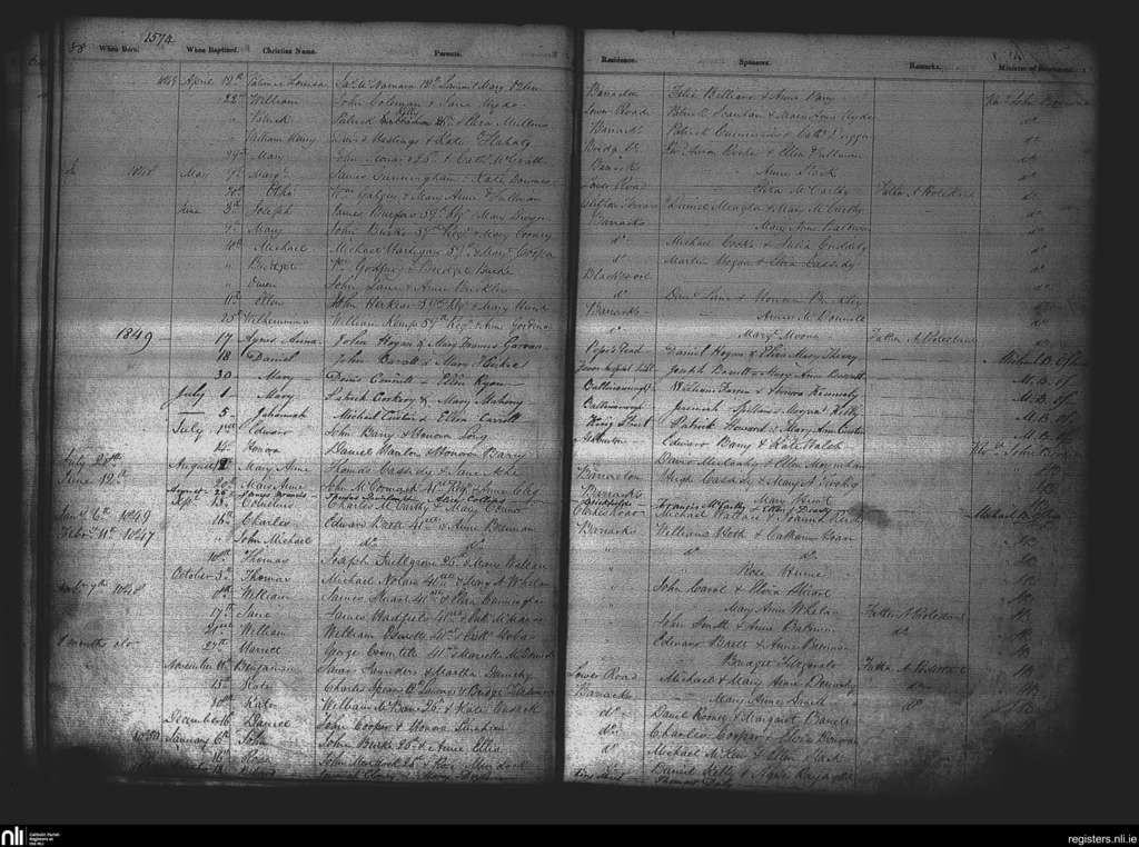St. Patrick's, Cork city; County of Cork; Diocese of Cork and Ross. Baptisms, Apr. 1849 to Jan. 1850