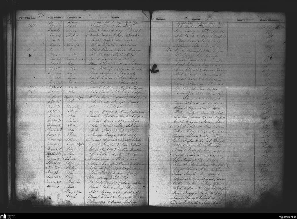 St. Patrick's, Cork city; County of Cork; Diocese of Cork and Ross. Baptisms, June 1850 to Dec. 1850