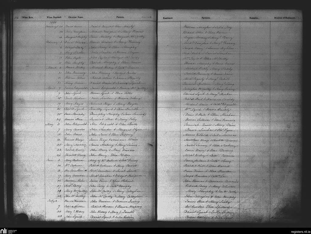St. Patrick's, Cork city; County of Cork; Diocese of Cork and Ross. Baptisms, Jan. 1838 to July 1838