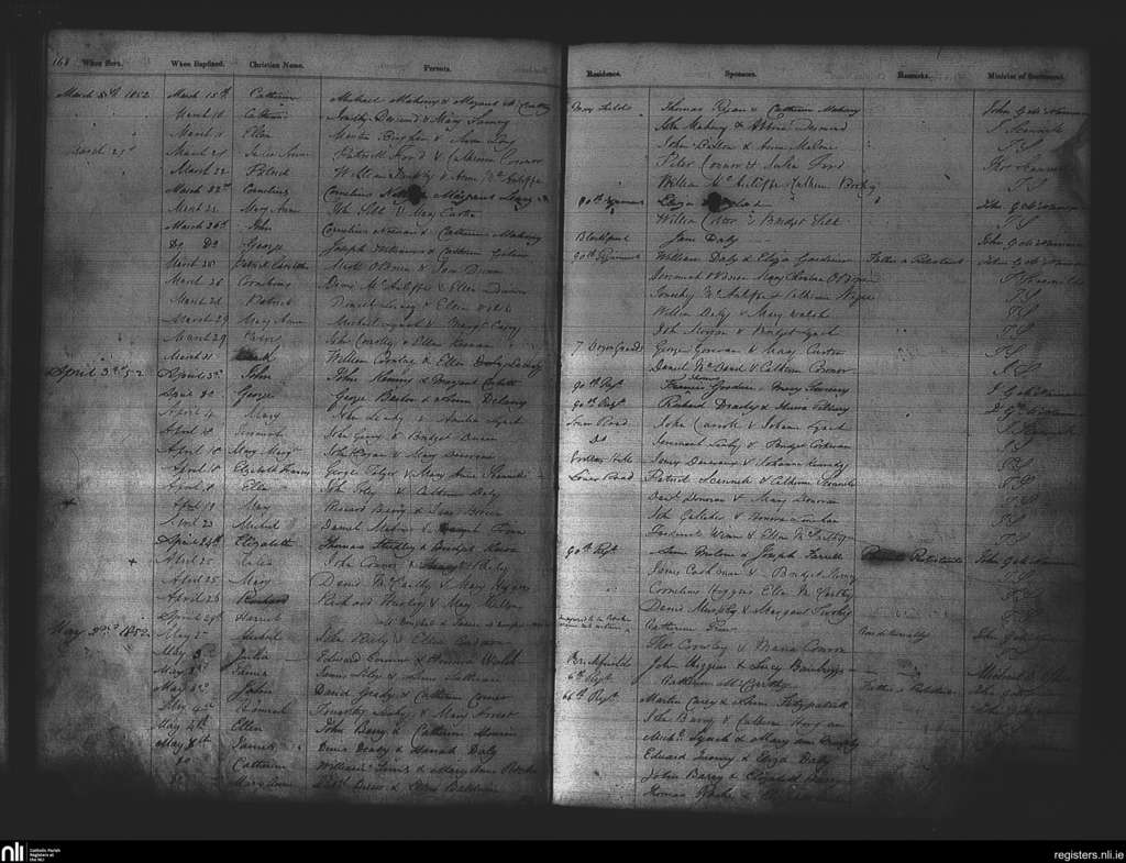 St. Patrick's, Cork city; County of Cork; Diocese of Cork and Ross. Baptisms, Mar. 1853 to May 1853
