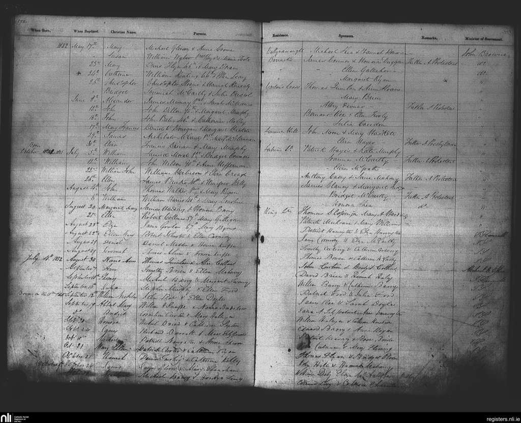 St. Patrick's, Cork city; County of Cork; Diocese of Cork and Ross. Baptisms, May 1852 to Oct. 1852