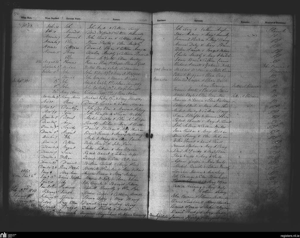 St. Patrick's, Cork city; County of Cork; Diocese of Cork and Ross. Baptisms, Aug. 1852 to Feb. 1853