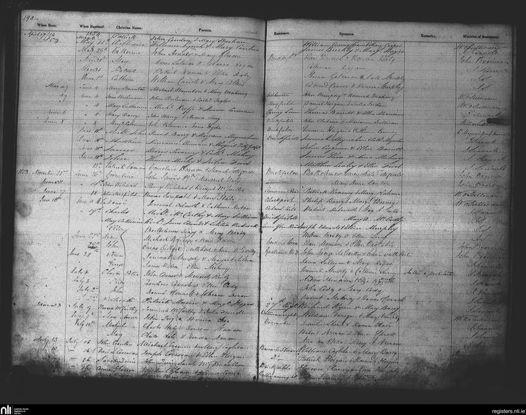 St. Patrick's, Cork city; County of Cork; Diocese of Cork and Ross. Baptisms, May 1854 to July 1854
