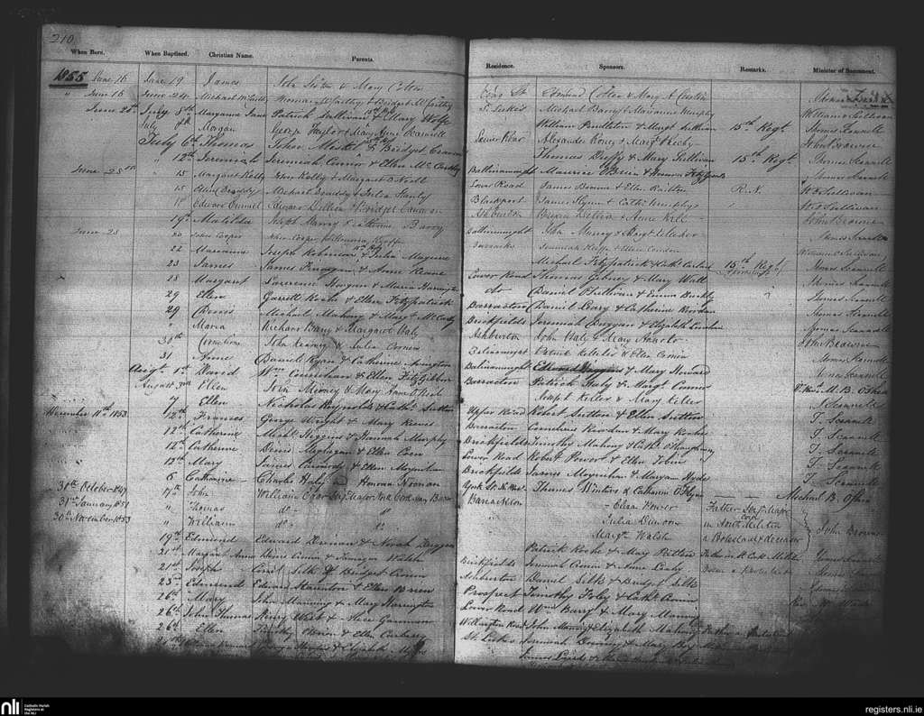 St. Patrick's, Cork city; County of Cork; Diocese of Cork and Ross. Baptisms, June 1855 to Aug. 1855