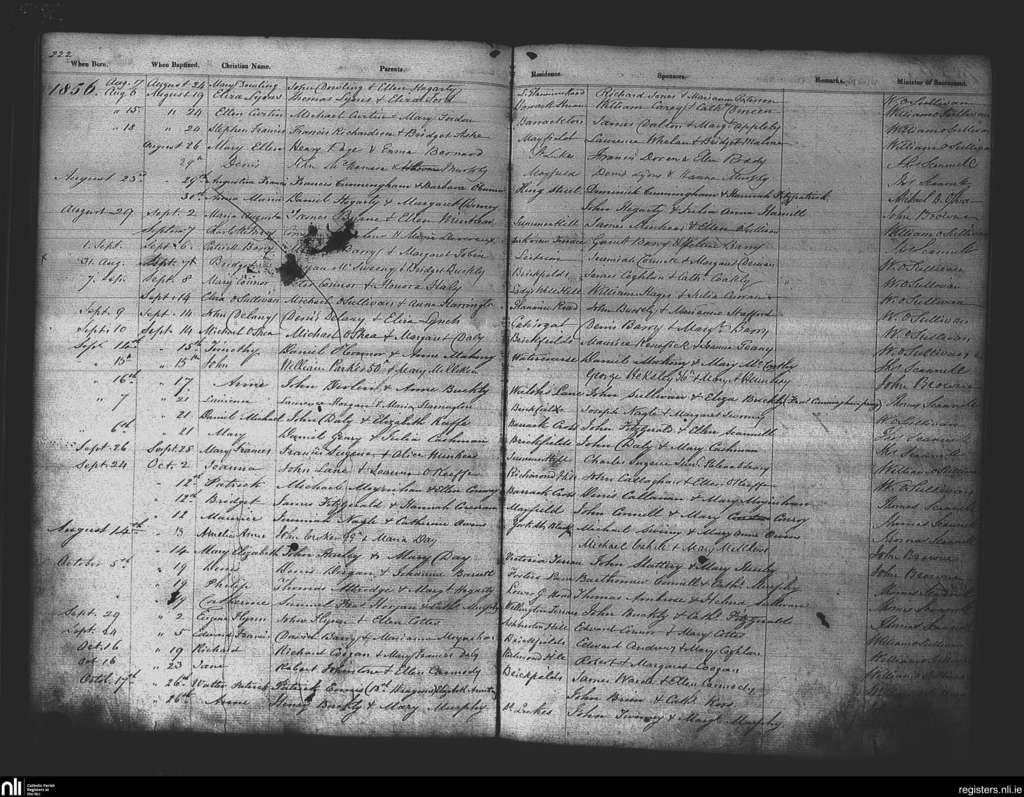 St. Patrick's, Cork city; County of Cork; Diocese of Cork and Ross. Baptisms, Aug. 1856 to Oct. 1856