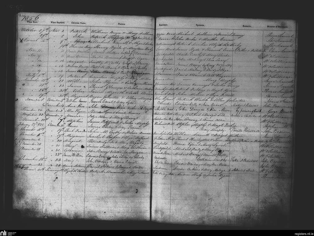 St. Patrick's, Cork city; County of Cork; Diocese of Cork and Ross. Baptisms, Nov. 1856 to Jan. 1857
