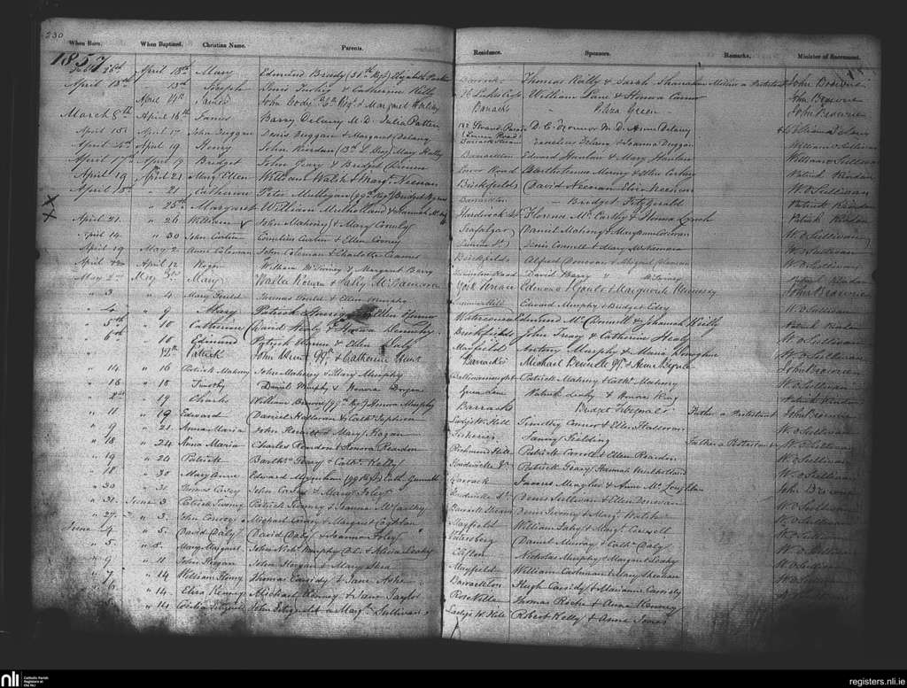 St. Patrick's, Cork city; County of Cork; Diocese of Cork and Ross. Baptisms, Apr. 1857 to June 1857