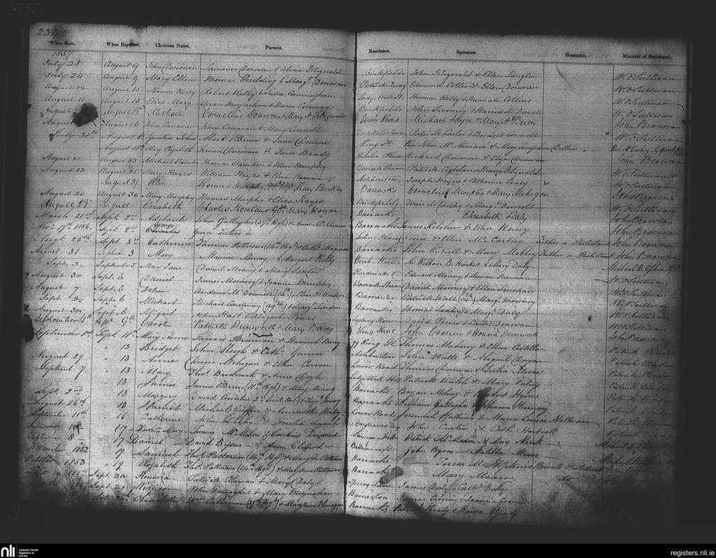 St. Patrick's, Cork city; County of Cork; Diocese of Cork and Ross. Baptisms, Aug. 1857 to Sep. 1857
