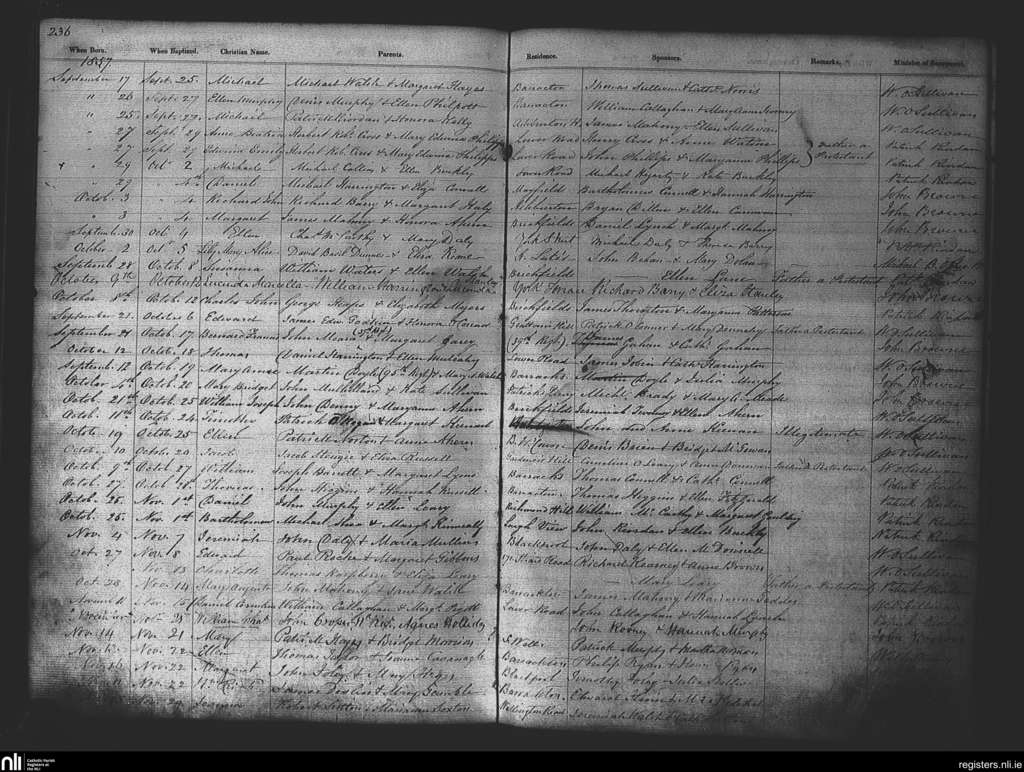 St. Patrick's, Cork city; County of Cork; Diocese of Cork and Ross. Baptisms, Sep. 1857 to Nov. 1857