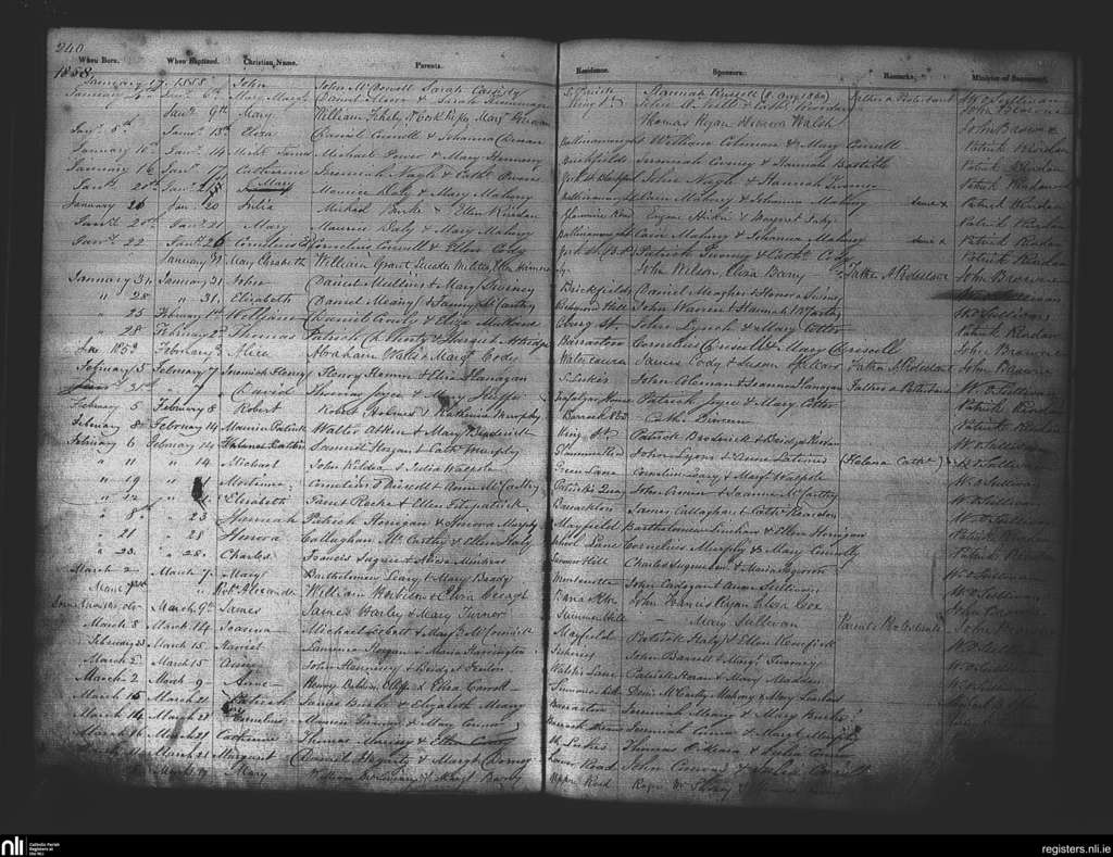 St. Patrick's, Cork city; County of Cork; Diocese of Cork and Ross. Baptisms, Jan. 1858 to Mar. 1858