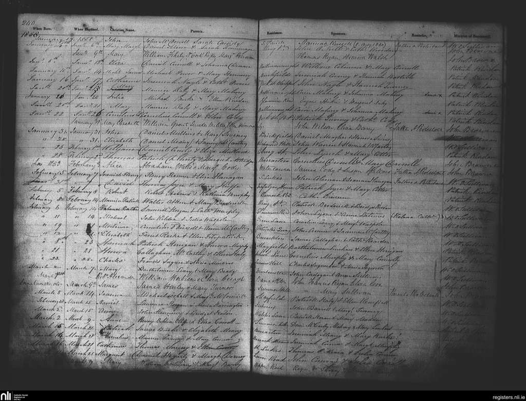 St. Patrick's, Cork city; County of Cork; Diocese of Cork and Ross. Baptisms, Jan. 1858 to Mar. 1858