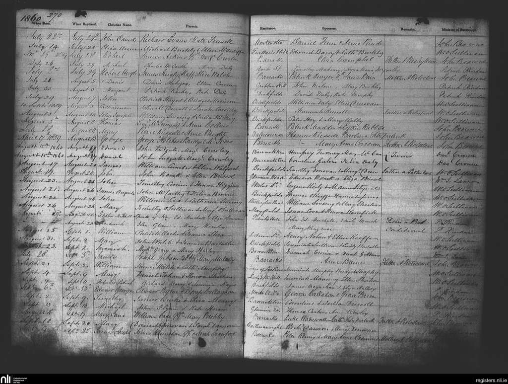 St. Patrick's, Cork city; County of Cork; Diocese of Cork and Ross. Baptisms, July 1860 to Sep. 1860