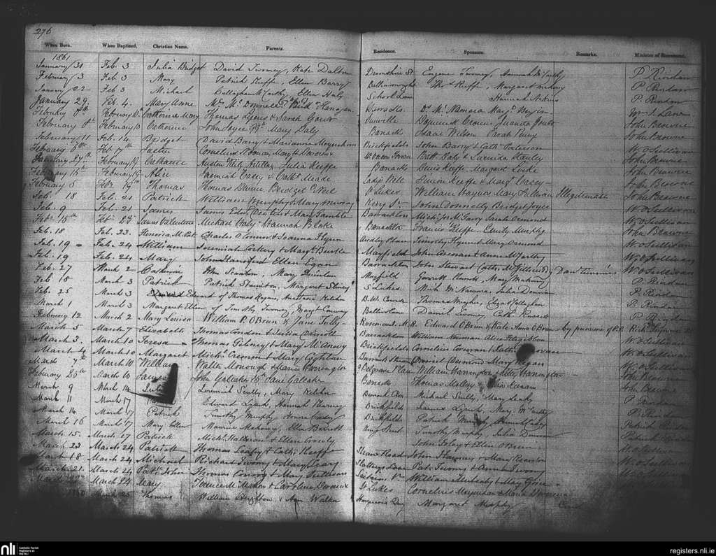 St. Patrick's, Cork city; County of Cork; Diocese of Cork and Ross. Baptisms, Feb. 1861 to Mar. 1861