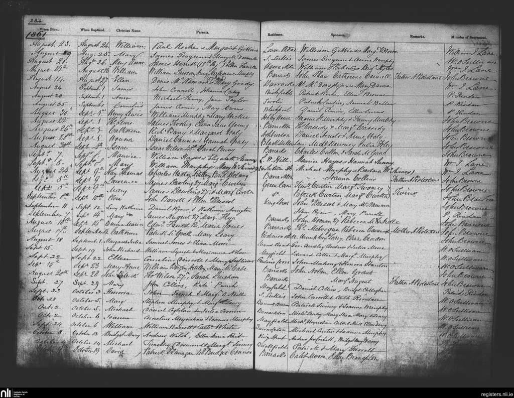 St. Patrick's, Cork city; County of Cork; Diocese of Cork and Ross. Baptisms, Aug. 1861 to Oct. 1861