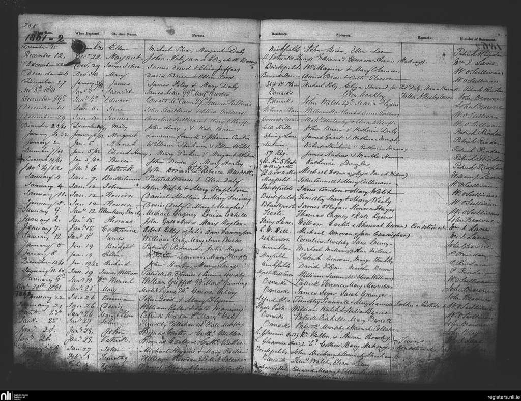 St. Patrick's, Cork city; County of Cork; Diocese of Cork and Ross. Baptisms, Marriages, Dec. 1861 to Feb. 1862