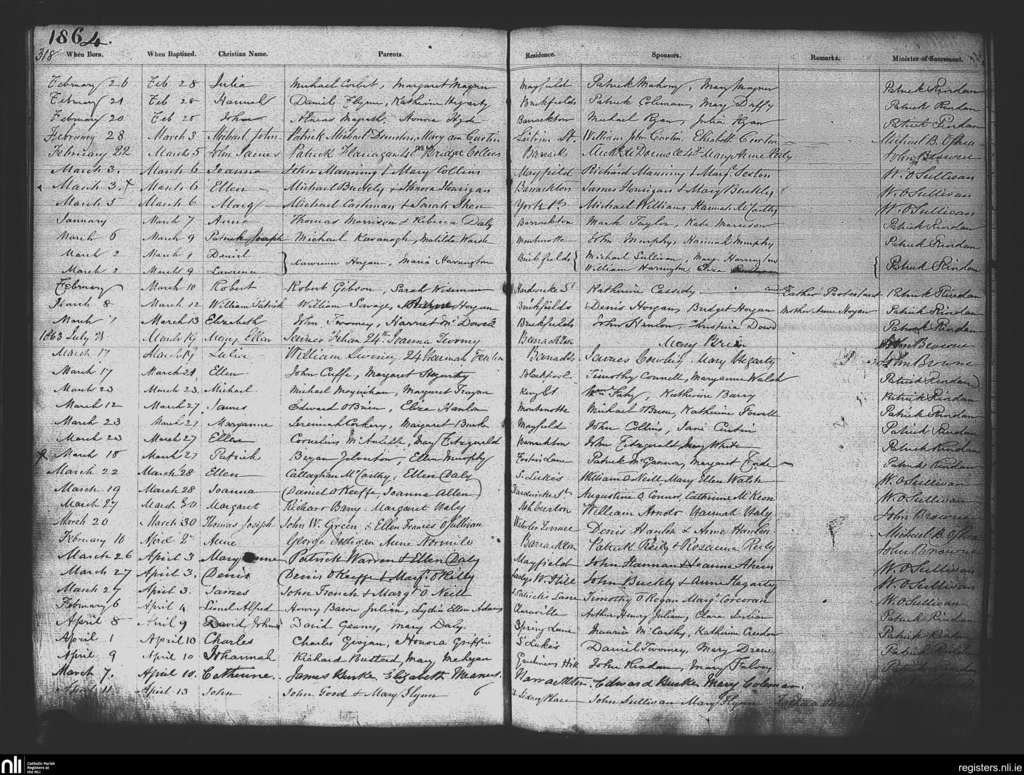 St. Patrick's, Cork city; County of Cork; Diocese of Cork and Ross. Baptisms, Feb. 1864 to Apr. 1864