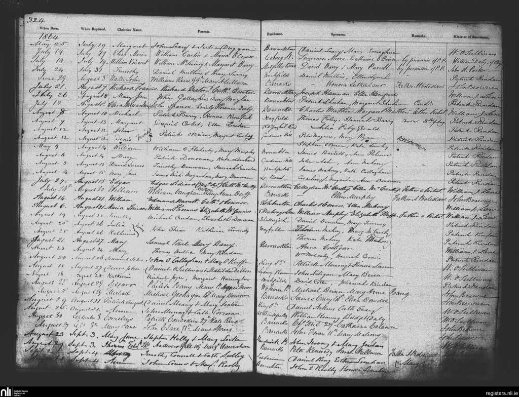 St. Patrick's, Cork city; County of Cork; Diocese of Cork and Ross. Baptisms, July 1864 to Sep. 1864