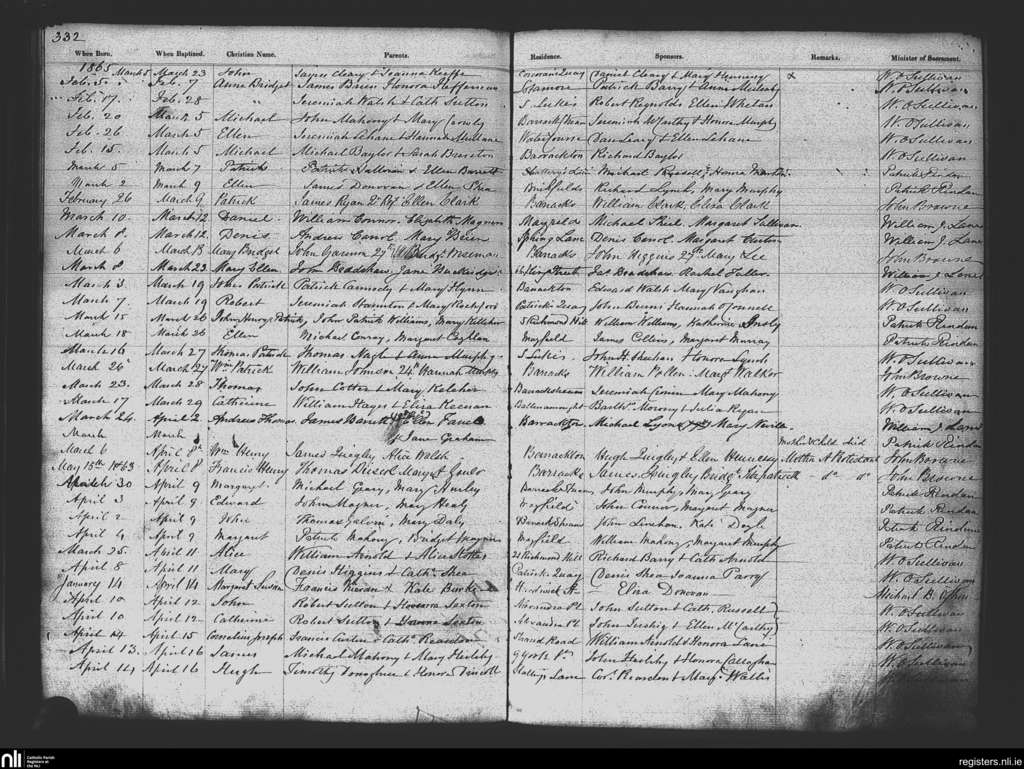 St. Patrick's, Cork city; County of Cork; Diocese of Cork and Ross. Baptisms, Feb. 1865 to Apr. 1865