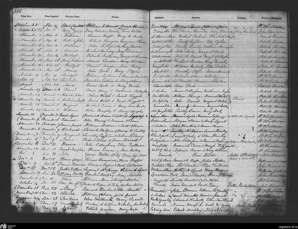 St. Patrick's, Cork city; County of Cork; Diocese of Cork and Ross. Baptisms, Nov. 1866 to Dec. 1866