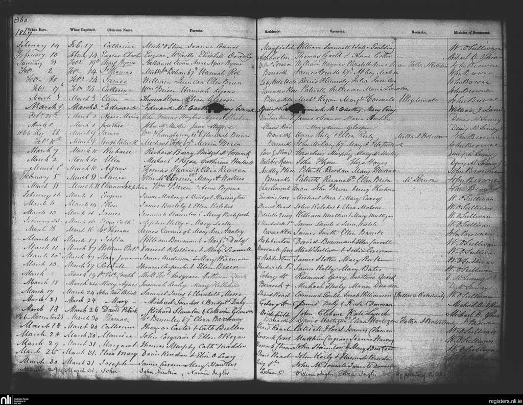 St. Patrick's, Cork city; County of Cork; Diocese of Cork and Ross. Baptisms, Feb. 1867 to Mar. 1867