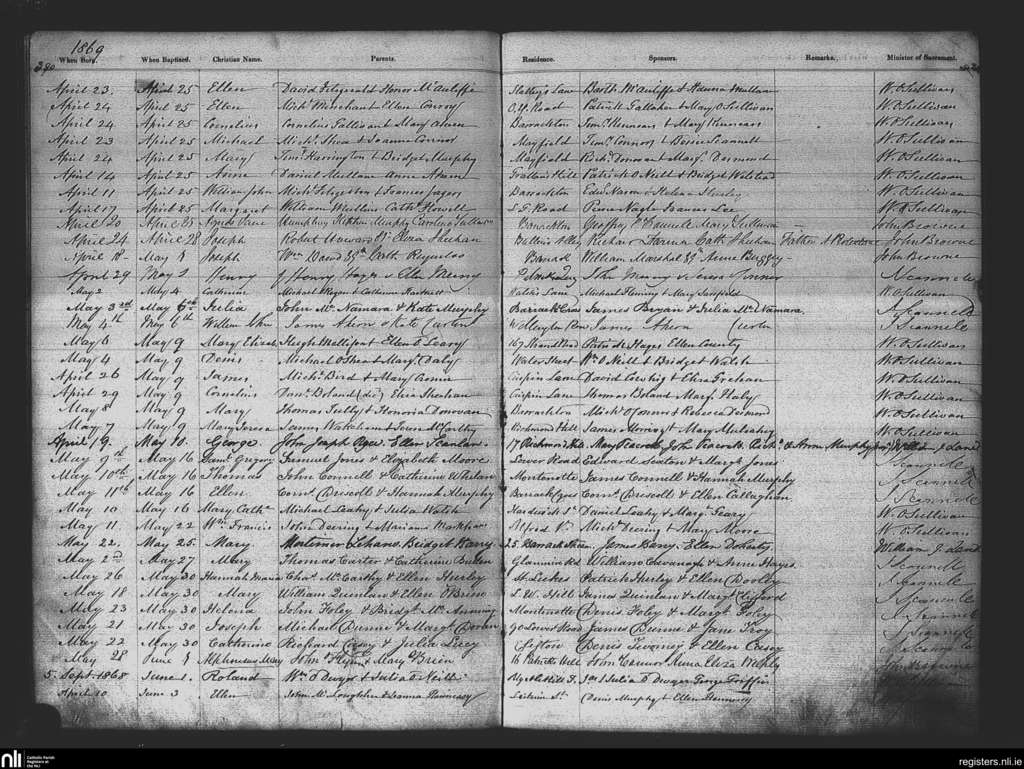 St. Patrick's, Cork city; County of Cork; Diocese of Cork and Ross. Baptisms, Apr. 1869 to June 1869