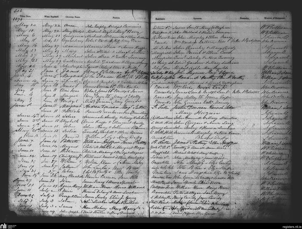 St. Patrick's, Cork city; County of Cork; Diocese of Cork and Ross. Baptisms, May 1870 to July 1870