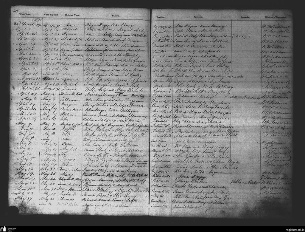 St. Patrick's, Cork city; County of Cork; Diocese of Cork and Ross. Baptisms, Apr. 1871 to May 1871