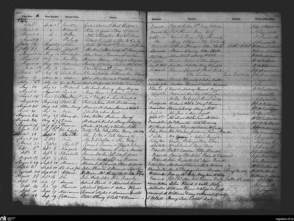St. Patrick's, Cork city; County of Cork; Diocese of Cork and Ross. Baptisms, Aug. 1871 to Sep. 1871