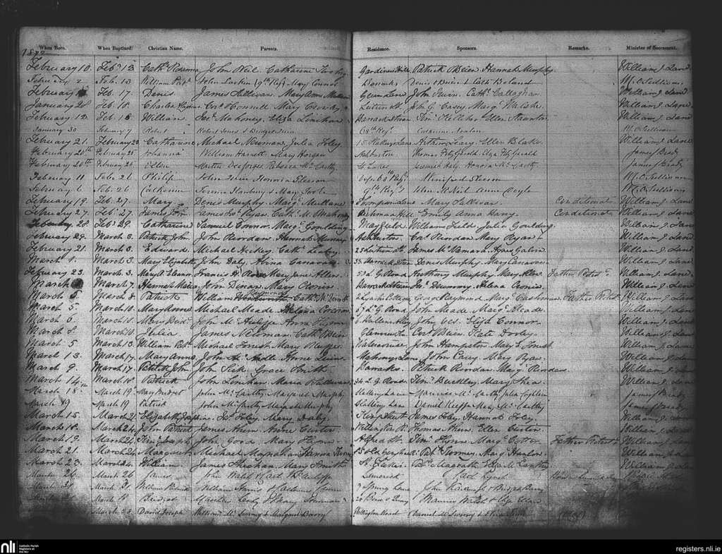 St. Patrick's, Cork city; County of Cork; Diocese of Cork and Ross. Baptisms, Feb. 1872 to Mar. 1872