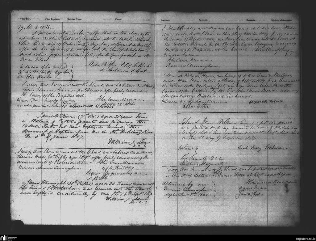St. Patrick's, Cork city; County of Cork; Diocese of Cork and Ross. Baptisms, Mar. 1866 to Sep. 1868