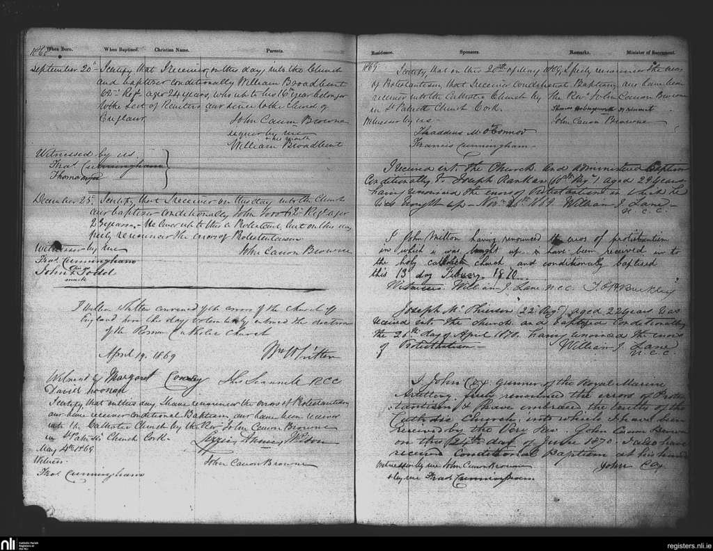 St. Patrick's, Cork city; County of Cork; Diocese of Cork and Ross. Baptisms, Sep. 1868 to June 1870