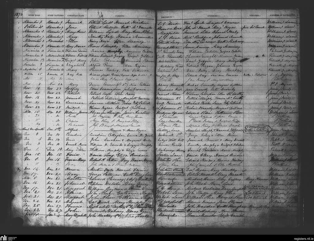 St. Patrick's, Cork city; County of Cork; Diocese of Cork and Ross. Baptisms, Marriages, Nov. 1873 to May 1910