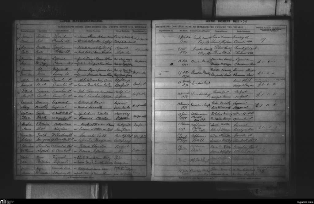 Holy Cross, Belfast city; County of Antrim; Diocese of Down and Connor. Marriages, Sep. 1874 to July 1875