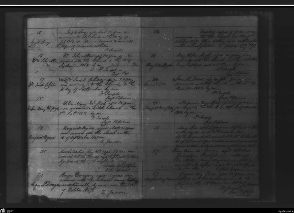 Holy Cross, Belfast city; County of Antrim; Diocese of Down and Connor. Converts, July 1869 to Nov. 1869
