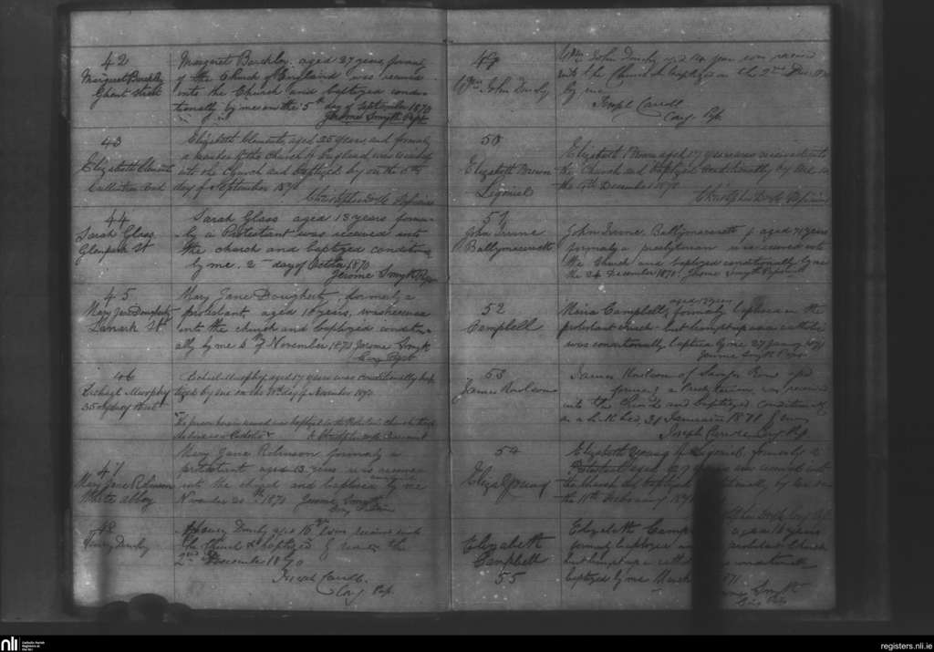 Holy Cross, Belfast city; County of Antrim; Diocese of Down and Connor. Converts, Sep. 1870 to Mar. 1871