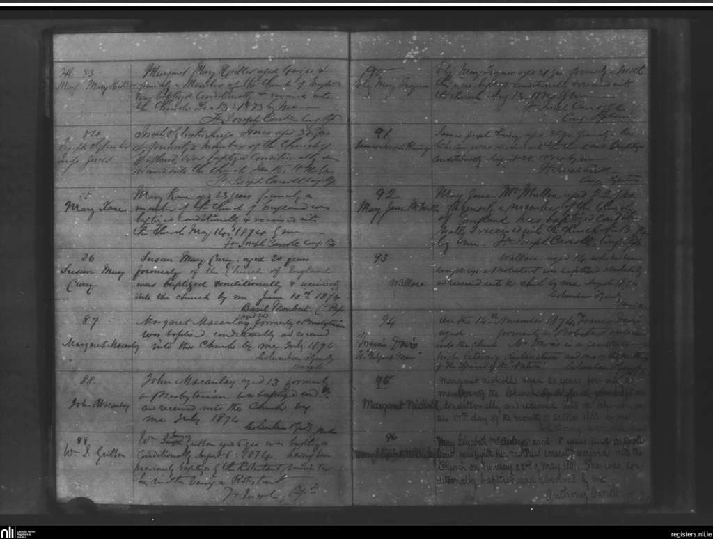 Holy Cross, Belfast city; County of Antrim; Diocese of Down and Connor. Converts, Dec. 1873 to May 1881