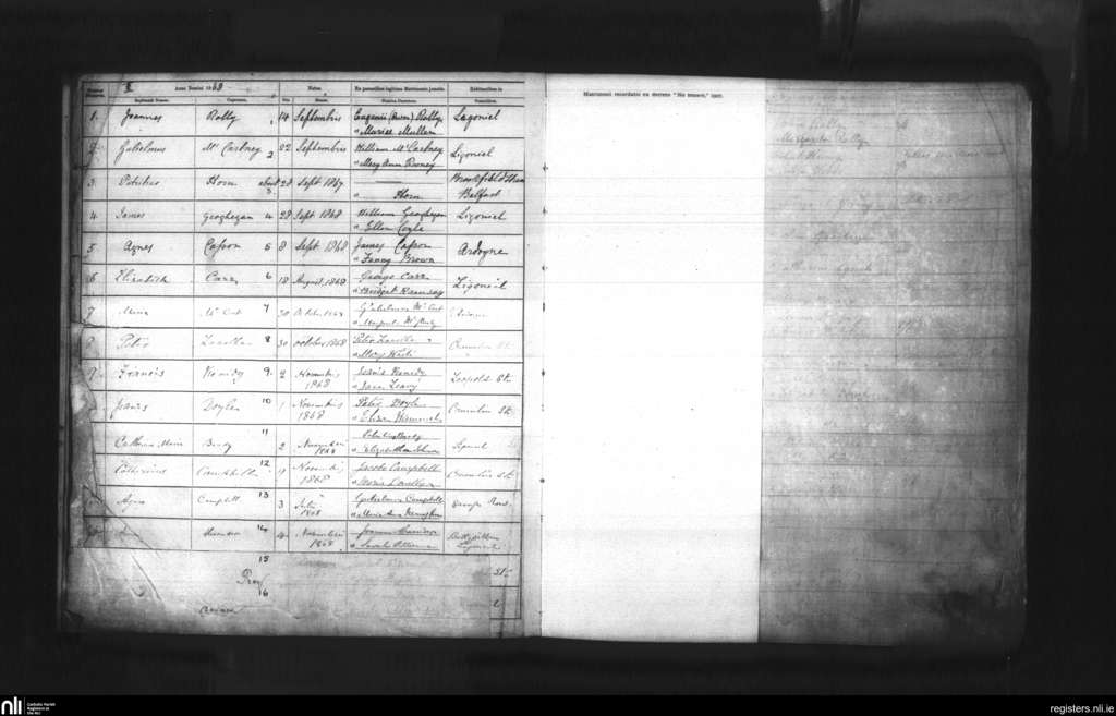 Holy Cross, Belfast city; County of Antrim; Diocese of Down and Connor. Baptisms, Sep. 1868 to Nov. 1868