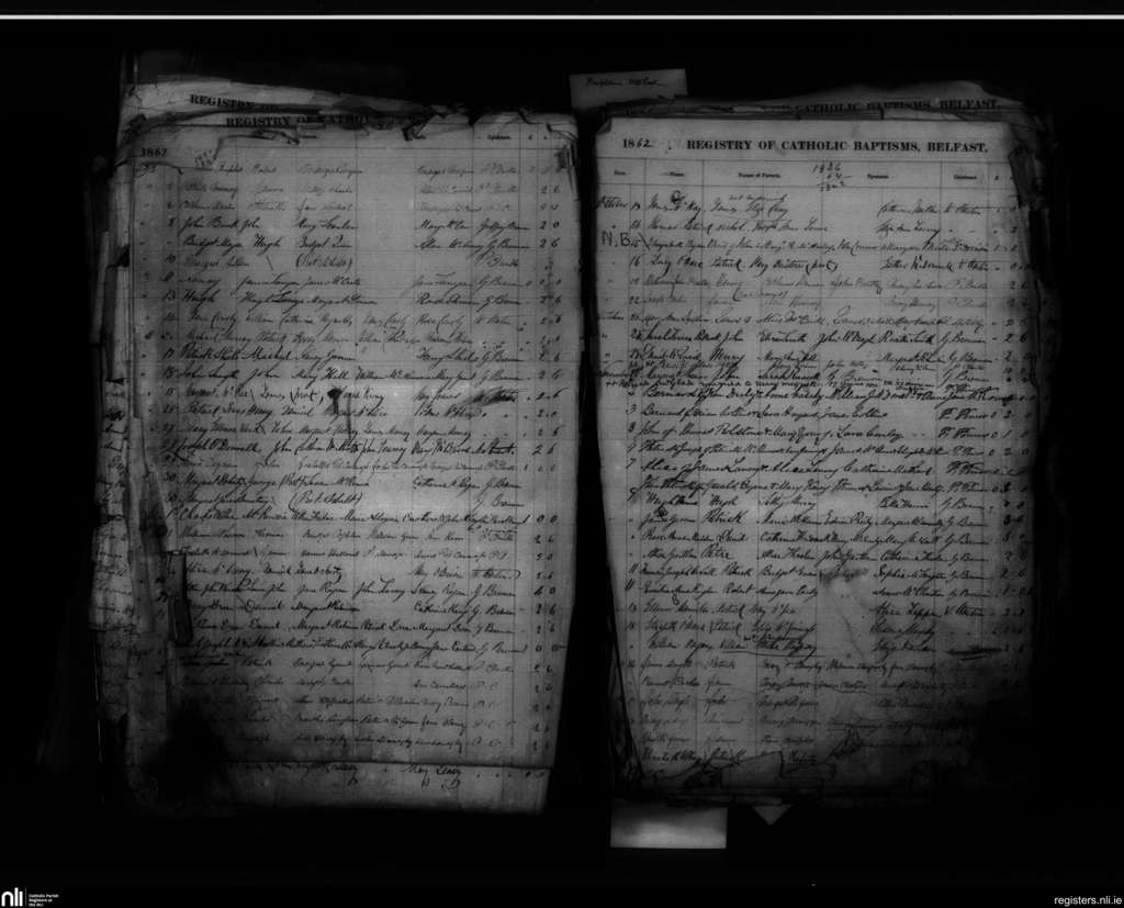 St. Malachy's, Belfast city; County of Antrim; Diocese of Down and Connor. Baptisms, Sep. 1862 to Nov. 1862