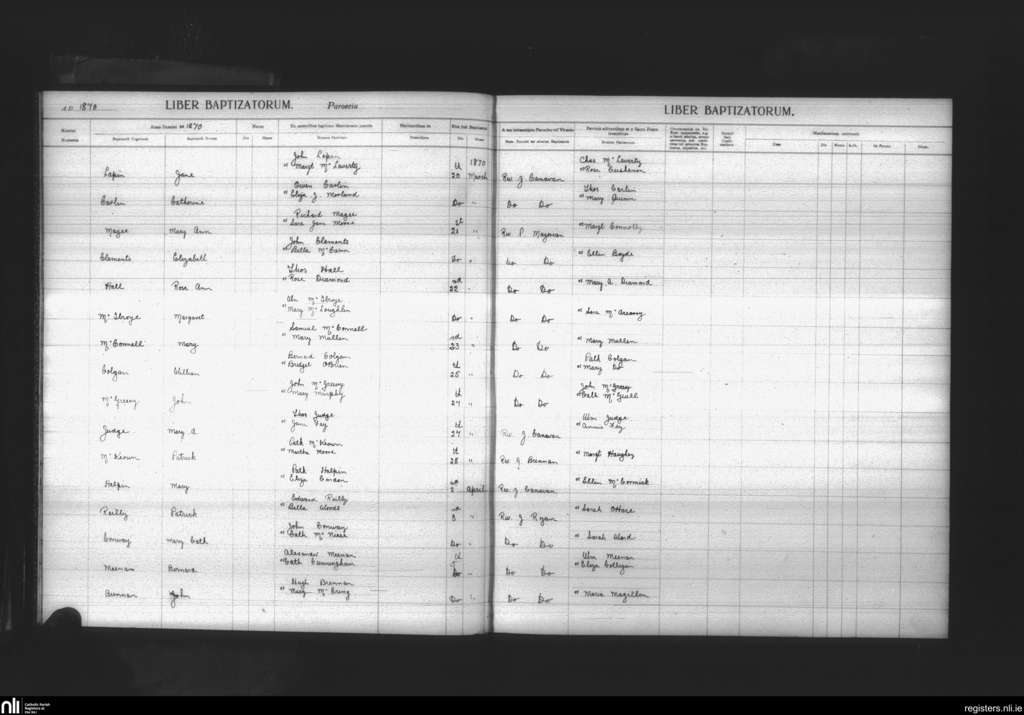 St. Malachy's, Belfast city; County of Antrim; Diocese of Down and Connor. Baptisms, Mar. 1870 to Apr. 1870