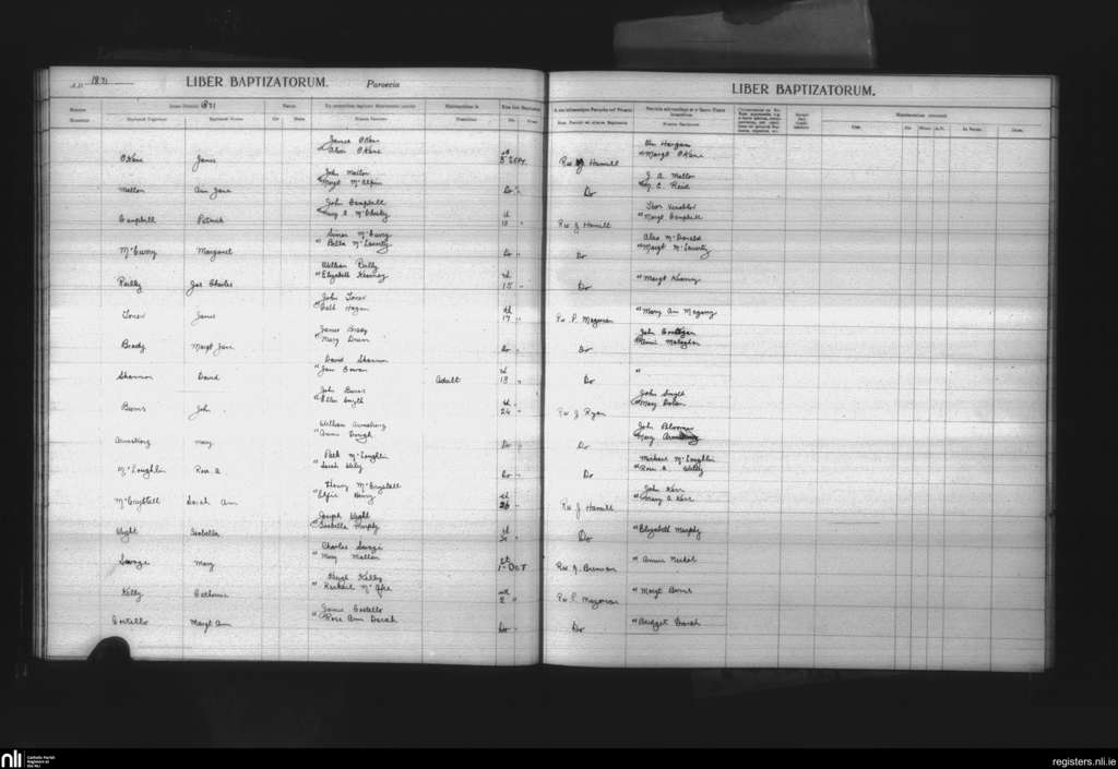 St. Malachy's, Belfast city; County of Antrim; Diocese of Down and Connor. Baptisms, Sep. 1871 to Oct. 1871
