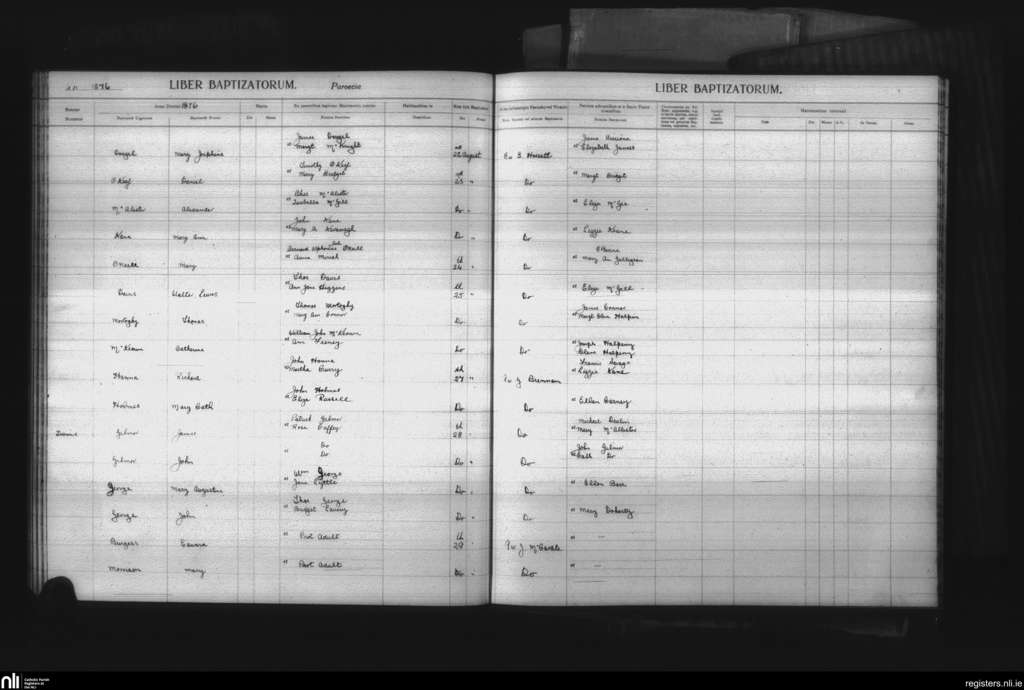 St. Malachy's, Belfast city; County of Antrim; Diocese of Down and Connor. Baptisms, Aug. 1876