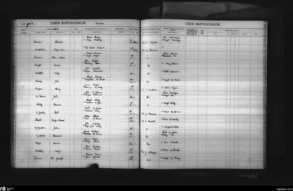 St. Malachy's, Belfast city; County of Antrim; Diocese of Down and Connor. Baptisms, Apr. 1877 to May 1877