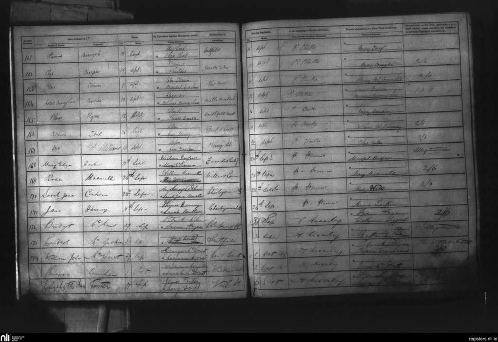 St. Mary's, Belfast city; County of Antrim; Diocese of Down and Connor. Baptisms, Sep. 1867 to Oct. 1867
