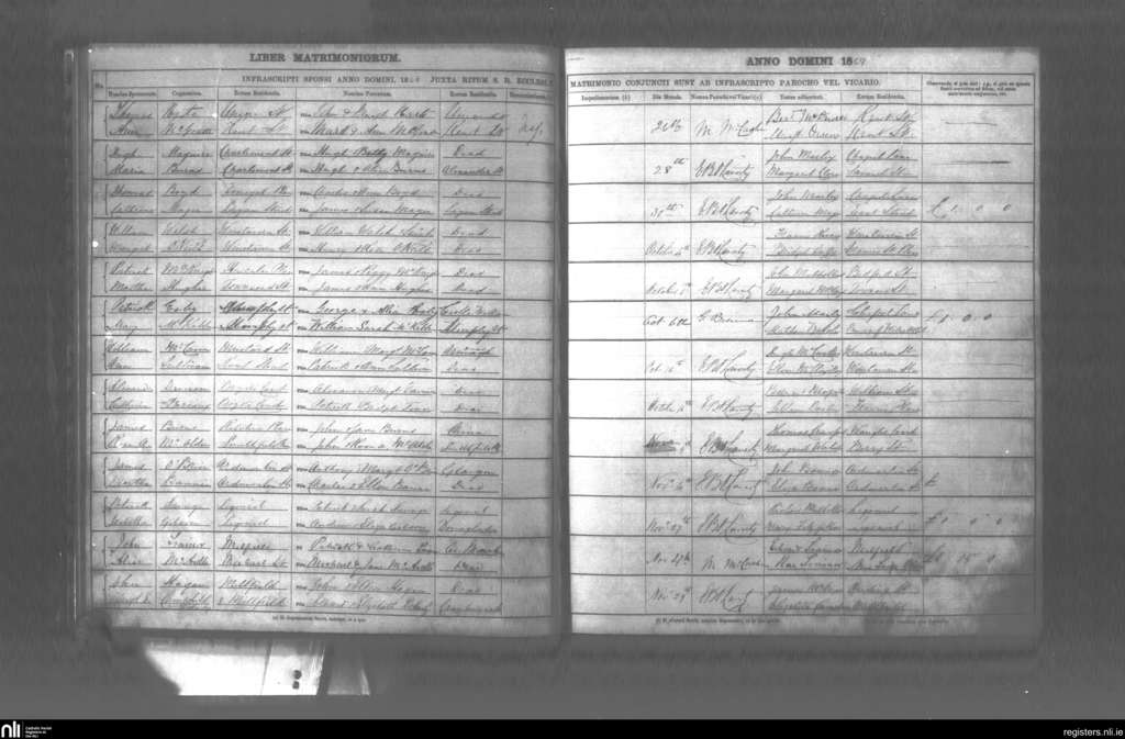 St. Mary's, Belfast city; County of Antrim; Diocese of Down and Connor. Marriages, Sep. 1869 to Nov. 1869