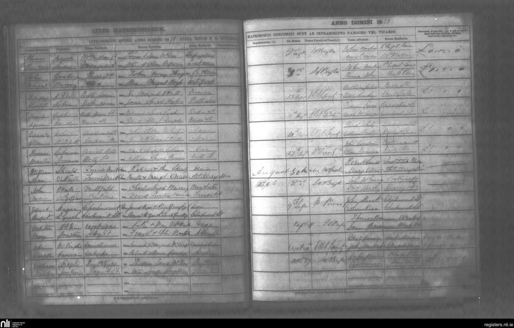 St. Mary's, Belfast city; County of Antrim; Diocese of Down and Connor. Marriages, Aug. 1871 to Oct. 1871