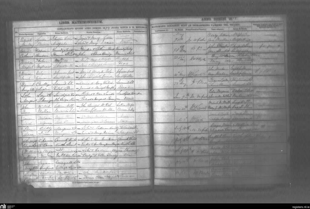 St. Mary's, Belfast city; County of Antrim; Diocese of Down and Connor. Marriages, May 1872 to Aug. 1872