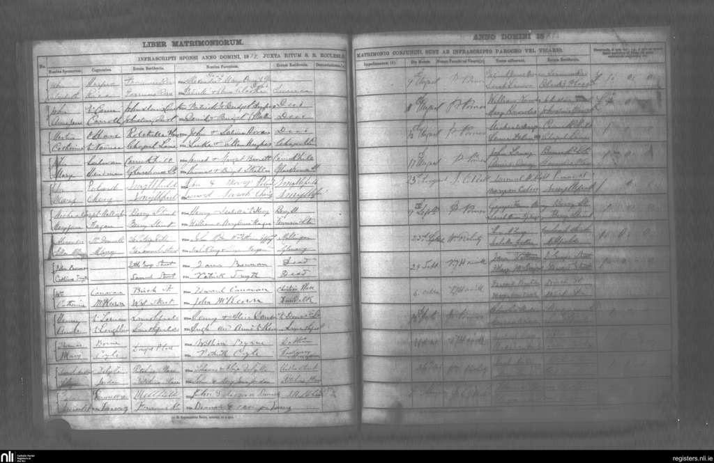 St. Mary's, Belfast city; County of Antrim; Diocese of Down and Connor. Marriages, Aug. 1872 to Nov. 1872
