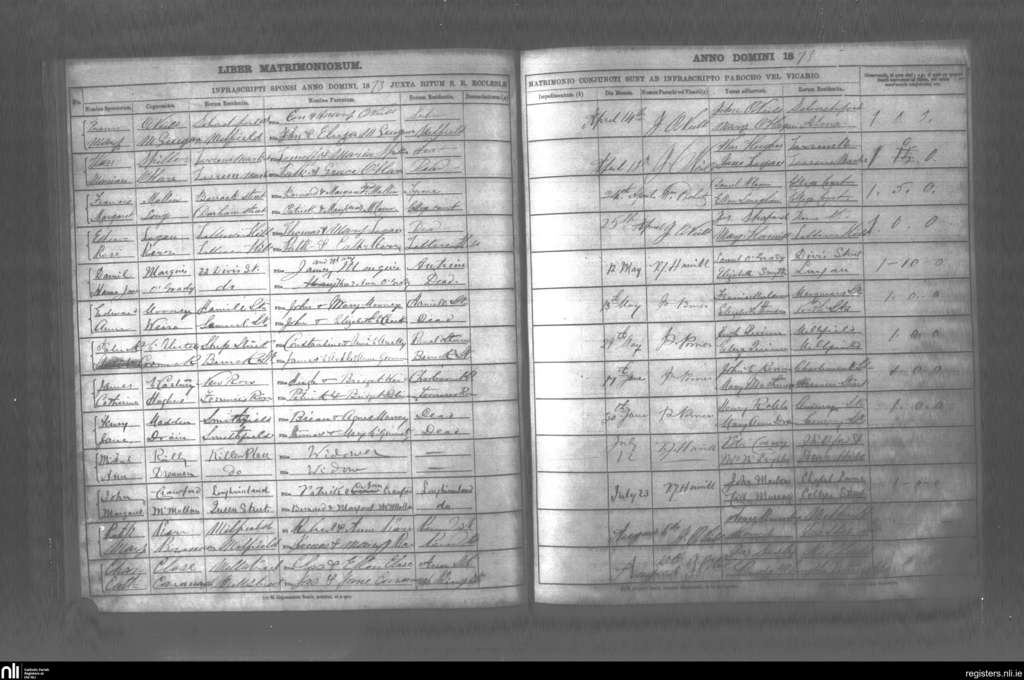 St. Mary's, Belfast city; County of Antrim; Diocese of Down and Connor. Marriages, Apr. 1873 to Aug. 1873