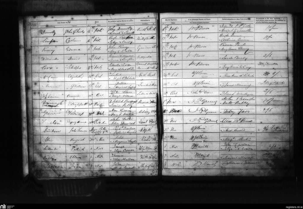 St. Mary's, Belfast city; County of Antrim; Diocese of Down and Connor. Baptisms, Oct. 1876 to Nov. 1876